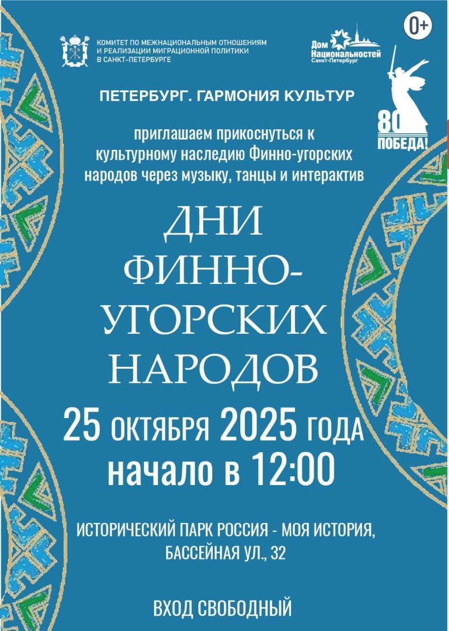 • 11:00 — Начало работы выставок, где будут представлены традиционные костюмы финно-угорских народов, а также мастер-классов по старинным ремеслам: гости смогут изучить искусство создания карельских узоров, познакомиться с техникой изготовления вепсских кукол-оберегов.